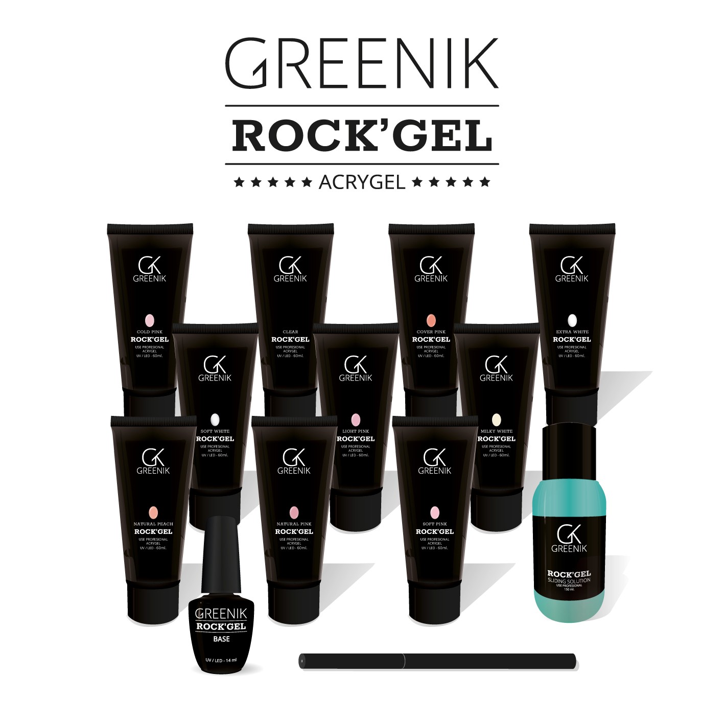 Izbirate lahko med različnimi odtenki: - ROCK`GEL CLEAR 60G - ROCK`GEL COVER PINK 60G - ROCK`GEL NATURAL PEACH 60G - ROCK`GEL NATURAL PINK 60G - ROCK`GEL SOFT WHITE 60G - ROCK`GEL EXTRA WHITE 60G CENA TUBE 40,90€+DDV, CENA BASE 15,49€+DDV. Izbirate lahko med različnimi odtenki. Za vse tiste, ki bi želeli preizkusiti Rock`gel pa je potreben tudi Rock`gel Base.