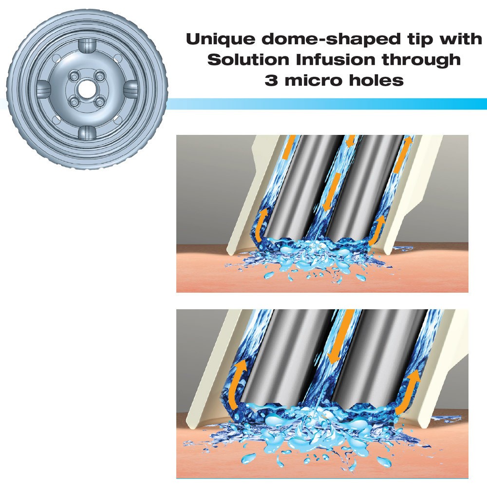 AquaGlo nudi intenzivni piling in globinsko očisti kožo, brezhibno odstrani nečistoče. S pomočjo spiralne konice vbrizga serum, bogat z antioksidanti, za maksimalno izboljšanje elastičnosti kože in hidratacije. Kožo pušča lepo gladko in osveženo. Popolnoma nežen princip delovanja, ki nudi takojšnje rezultate brez nelagodja.