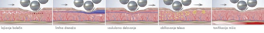 Gibanje kroglic in smer vrtenja valja ustvarita "črpalni" učinek, ki aktivira limfni sistem in odpravlja strupene tekočine. - Vaskularno delovanje