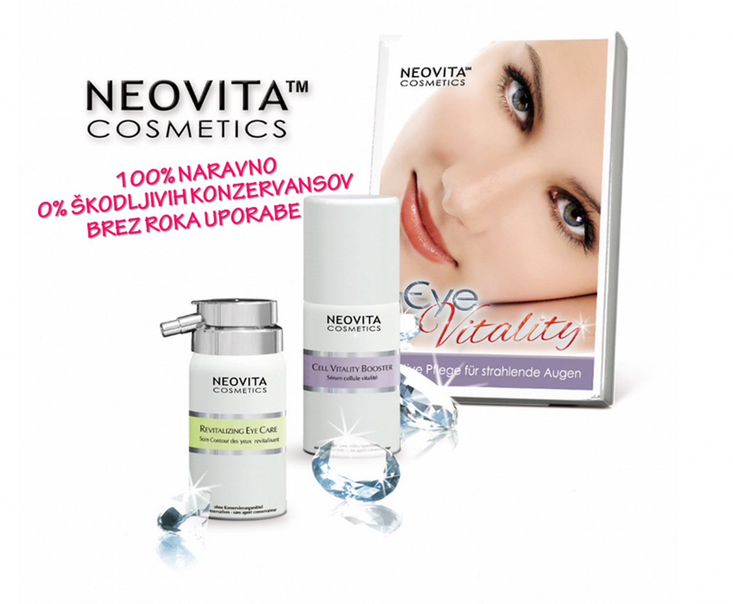 NEOVITA Eye Vitality set je sestavljen iz odličnih izdelkov za čudovite oči. Revitalizacija nege kože okoli oči s posebej veliko embalažo Cell Vitality Boosterja.