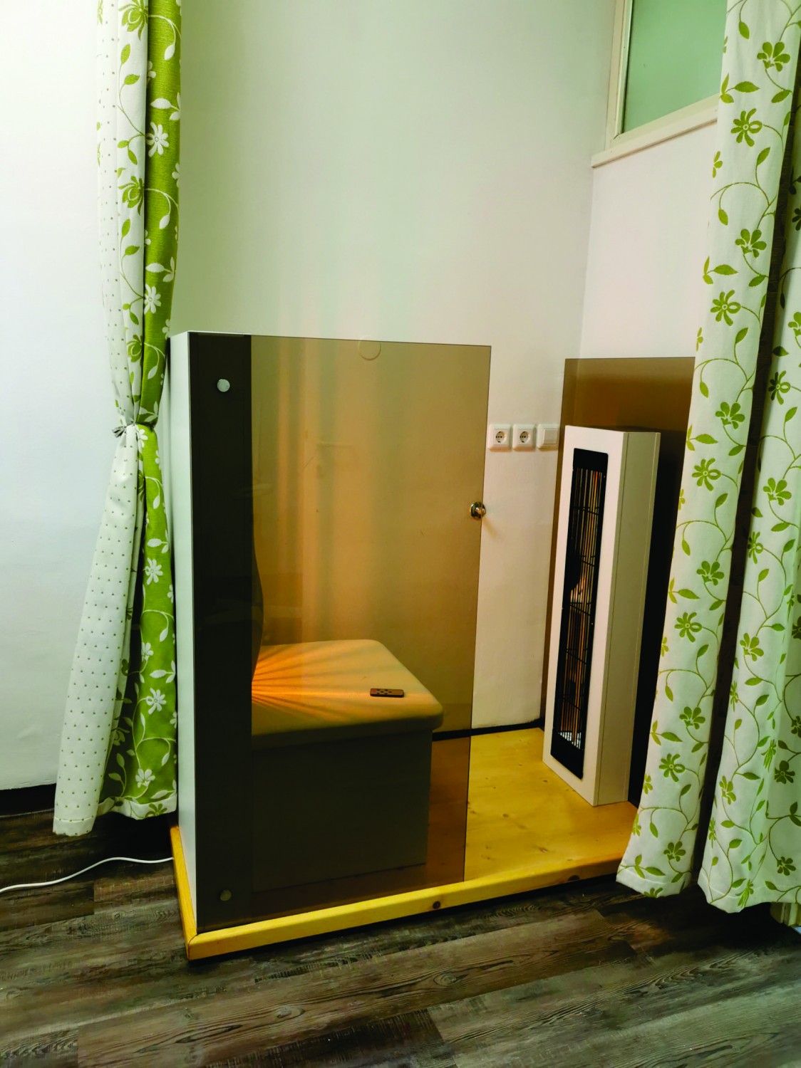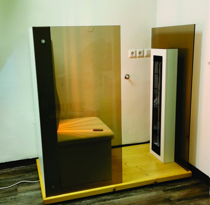 Konstrukcija, ki ne utesnjuje. Značilni odprti urbani dizajn kabine s steklenimi površinami, daje konstrukciji zračnost in odprtost. Idealna za vsako kopalnico, ali za minimalni prostor v bivalnem okolju, ki je namenjen sprostitivi. Kombinacija dveh različnih virov infrardečega toplotnega sevanja, hrbtni del z medicinskim grelcem celotnega spektra ABC, ter sprednji del s keramičnim grelcem v tehniki Lava, daje optimalne učinke v terapevtskem, kakor tudi wellness področju.
