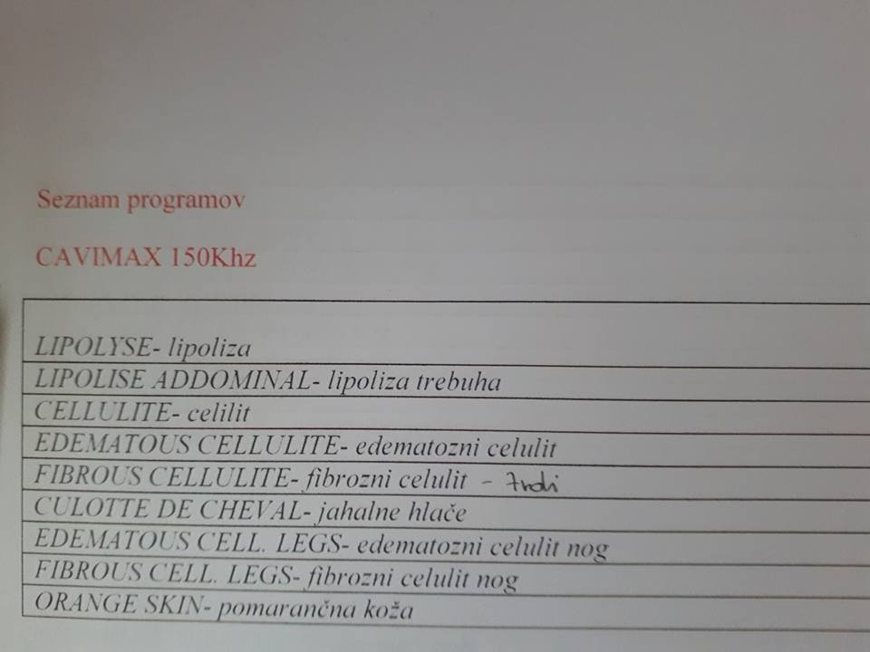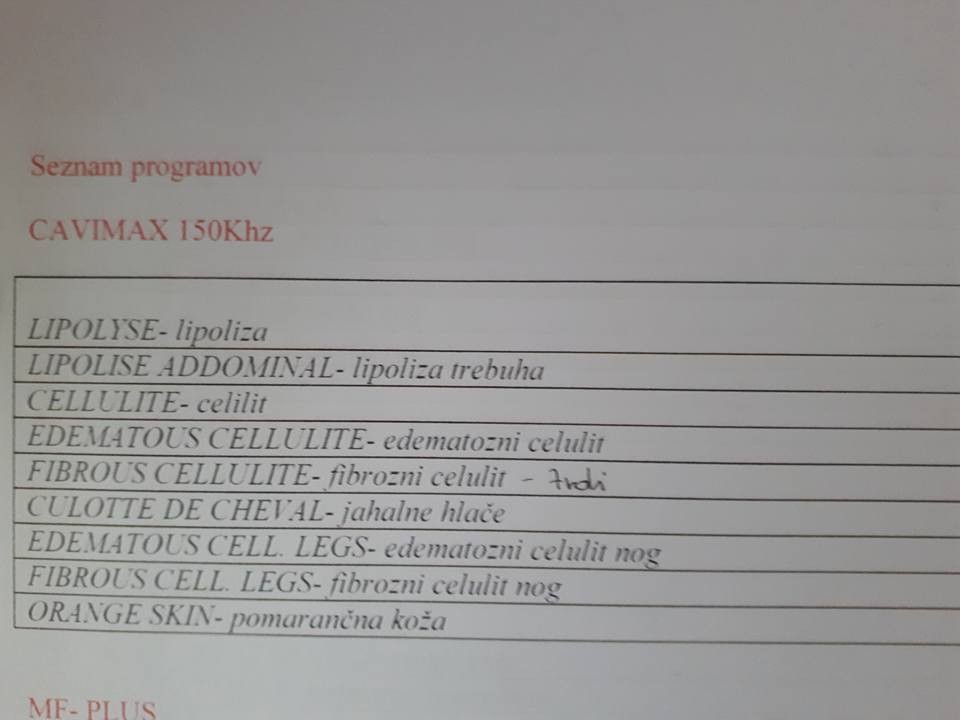 PRODAM kavitacijo z ultrazvokom. Izjemno dobri rezultati. Za novo sem dala 3.700 eur. Italijanski proizvajalec. Vrhunska kakovost.
