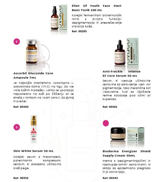 Celotna rutina vključuje tudi druge izdelke, kot so stekleničke, maske itd. za okrepitev in dopolnitev učinka naših izdelkov. V tem primeru bi se postopek izvajal v naslednjem vrstnem redu: