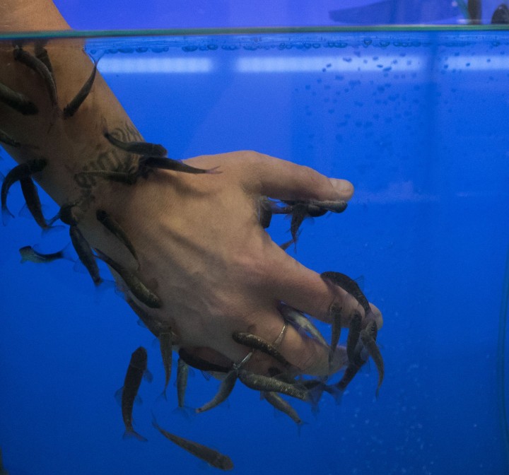 Za popoln fish spa tretma, za pediukuro in/ali manikuro, je na voljo komplet akvarij (250L), mere d100xš50xv50cm z ribicami Garra rufa (poznane kot "dr.fish") z vso pripadajočo opremo, za možnost uživanja in razvajanja v družbi ribic za dve osebi hkrati.