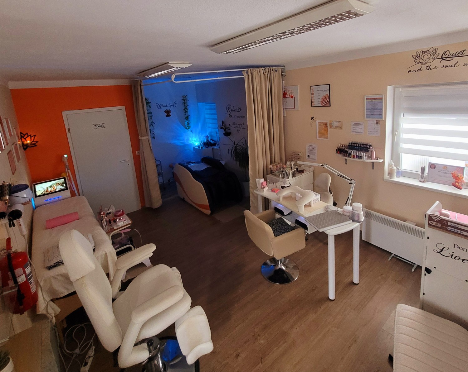 Oddam svetel in urejen poslovni prostor, primeren za kozmetiko, masaže, trepalnice, nohte, head spa, diod laser za odstranjevanje dlak, pedikuro ali druge storitvene dejavnosti.