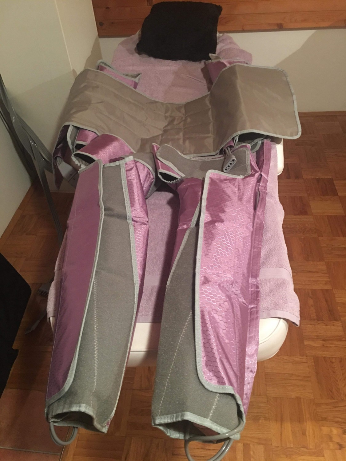 Nova zapakirana obleka primerna za kozmetične salone ali domačo uporabo, ker je zelo enostavna za uporabo. Pressoterapija ali mehanska limfna drenaža je terapija, ki odlično rešuje težave z zastajanjem tekočine v telesu ter težave z mehkim celulitom. Narejena je iz kakovostnega materiala in izdelava vseh enot omogočajo dolgo življenjsko dobo in lahko prenosljivost. Enostavno vzdrževanje - enostavno obrišite z vlažno krpo. Zraven prejmete še certifikat.