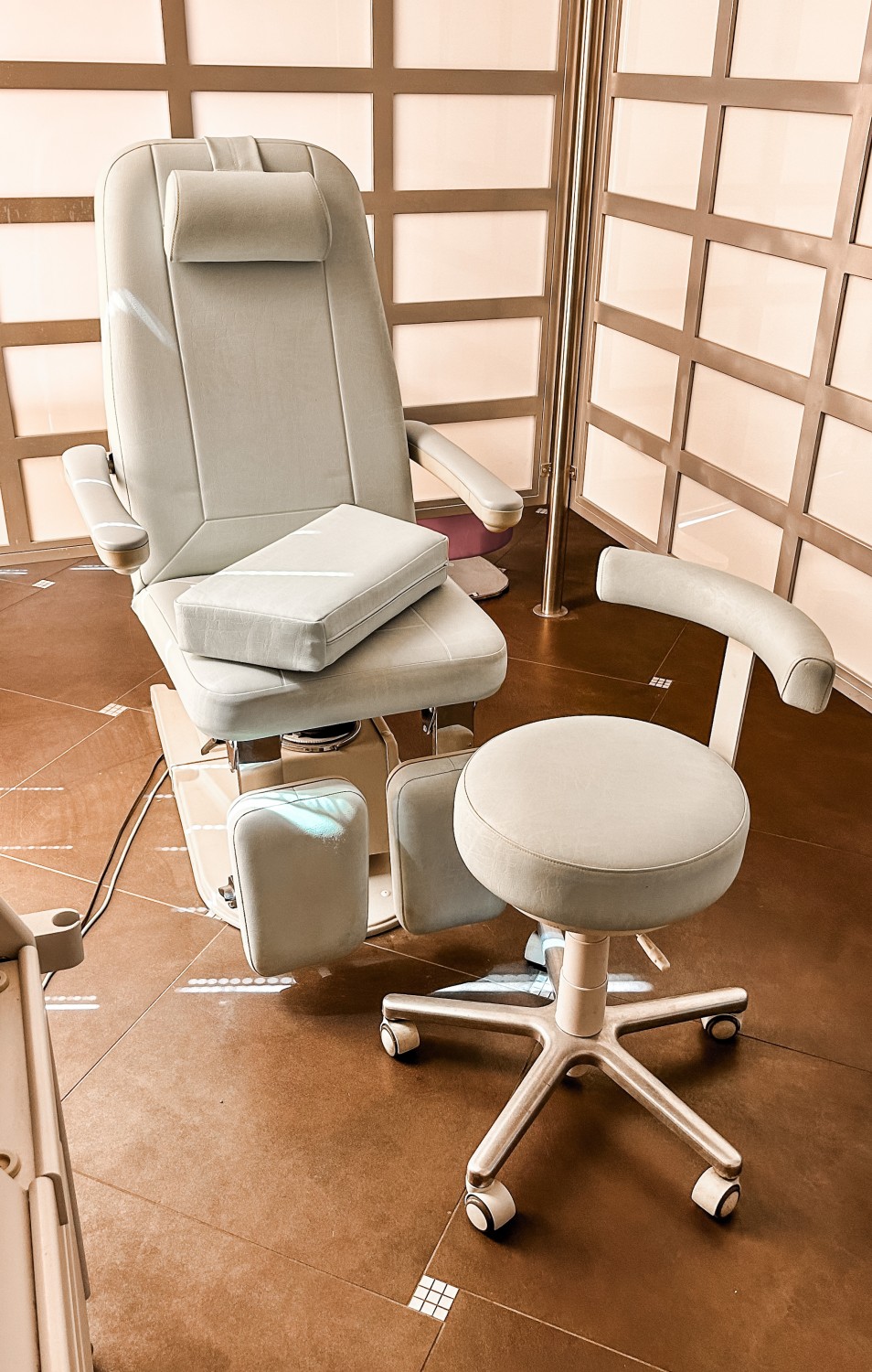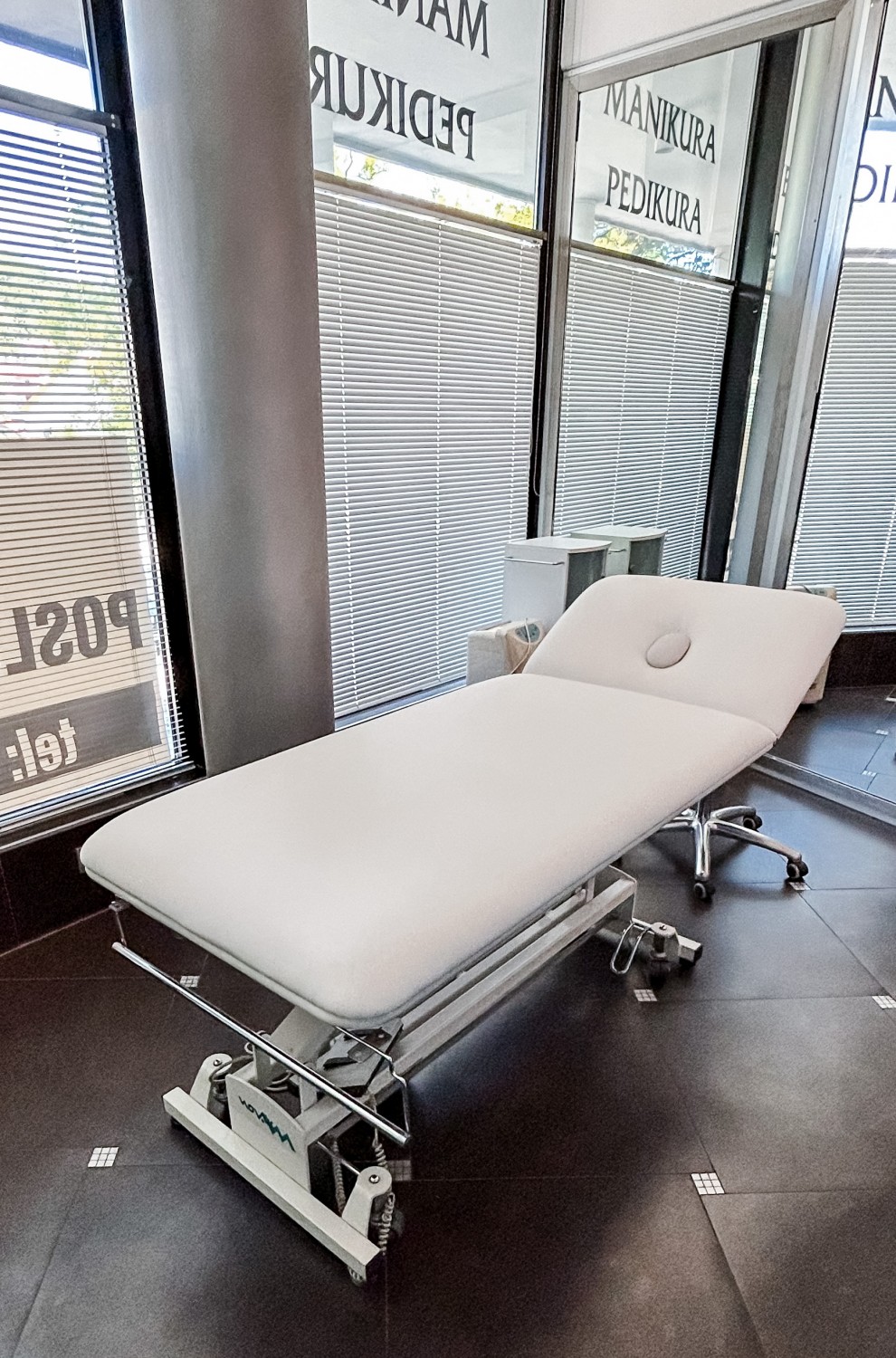 Stol za nego nog (pedikuro) znamke Gehwol + stol za izvajalca pedikureVisoko kakovosten stol nemške izdelave z električnim upravljanjem. Udoben in priročen stol za pedikuro, super se obnese tudi za za opravljanje ostale kozmetične nege.Cena: 800 eur