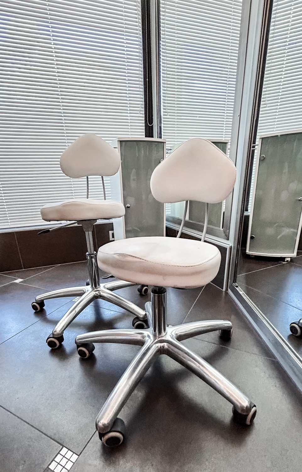 Bel stol: enostaven, a nadvse uporaben v kozmetičnih salonih. Dobro ohranjen.Cena: 60 eur