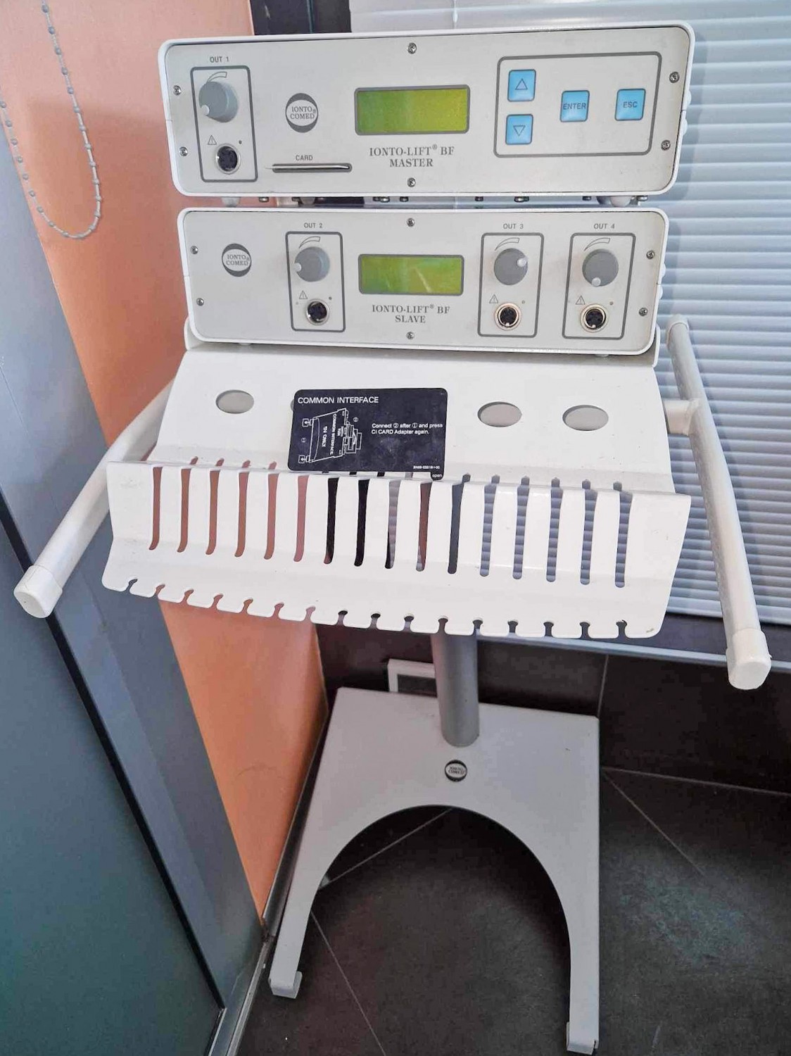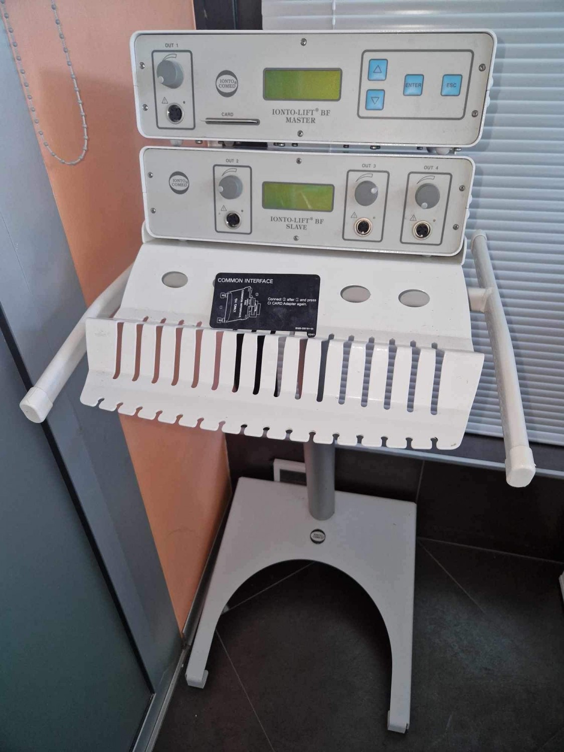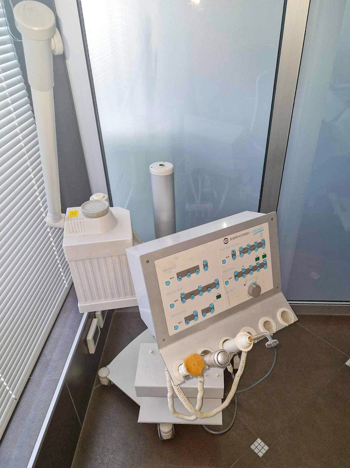 Kozmetični stolp za nego obraza s stojalom in vapozonomKakovosten kozmetični stolp znamke Ionto-Comed compact za izvajanje obrazne nege ter ostalih kozmetičnih storitev z vključenim vapozonom.Cena: 680 eur