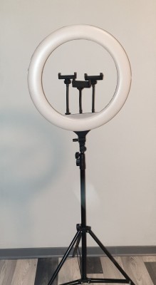 Prodam NOV velik ring light -Ring light ima premer 43cm -moč 45w. -Svetloba ima 3 stopenjsko prilagoditev, od 3200k do 5800k. Prav tako ima 10 stopenj svetlosti, kar pomeni, da ima možnost 30 različnih nastavitev. -Zraven je priložen tudi daljinec in 3 držala za telefon, ter stojalo, ki je po višini nastavljivo do cca 210cmCena 80€