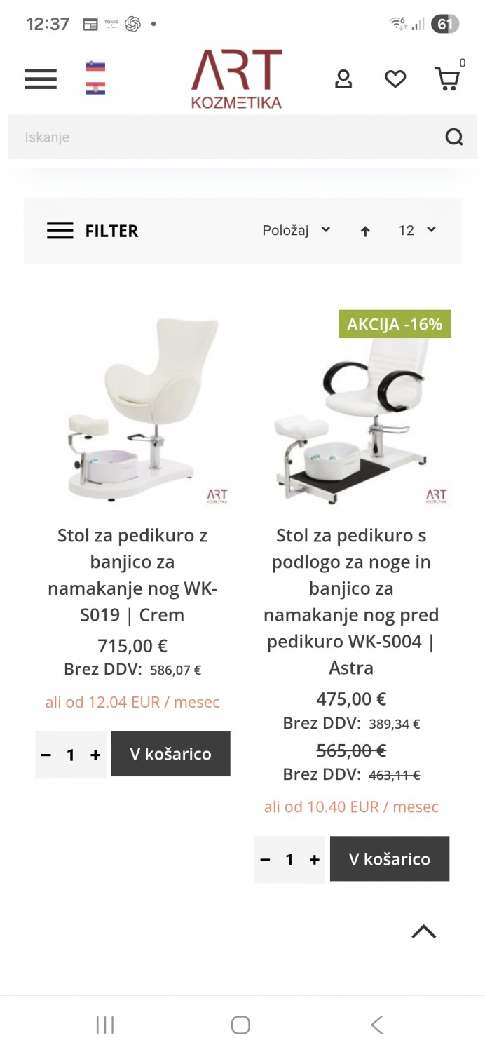 Mija Ribarič Pošlji sporočilo Prodam izdelek 100,00 € ŠKOFJA LOKA Poglej na zemljevid Pošlji sporočilo Prodam hidravlični stol za pedikuro.Zraven dodam še banjico.Stol je v odličnem stanju prodajam zaradi nakupa novega.Kontakt 041 792 383.Lokacija prevzema Škofja Loka Stol za pedikuro Mija Ribarič Pošlji sporočilo Prodam izdelek 100,00 € Pošlji sporočilo