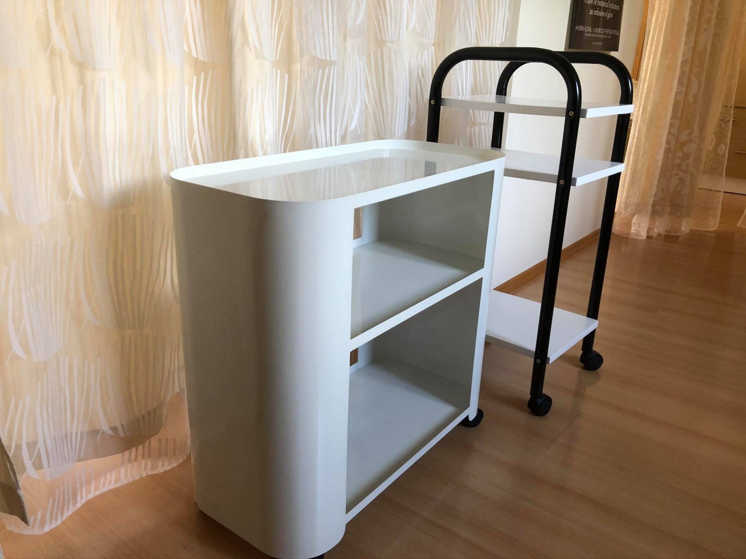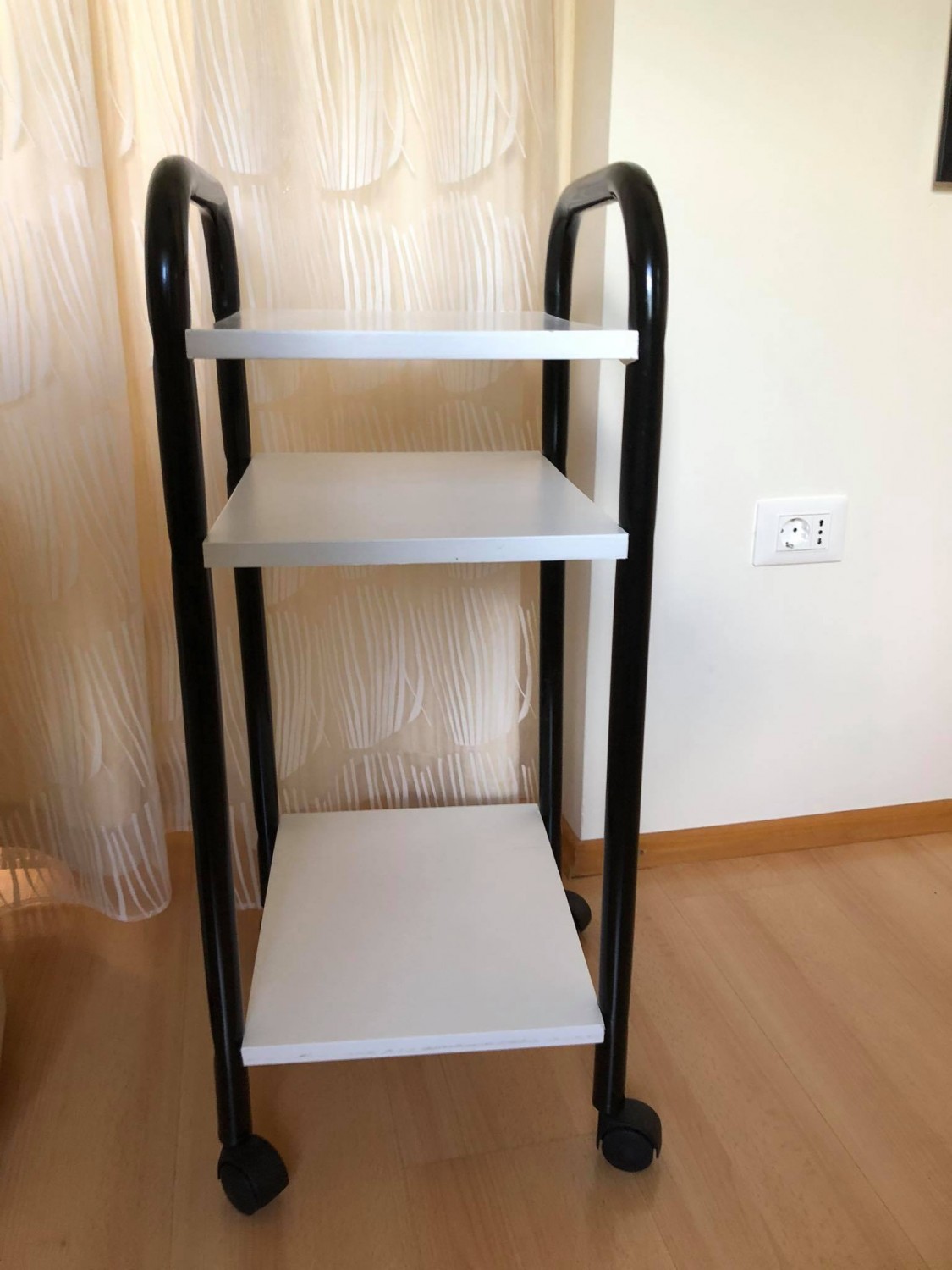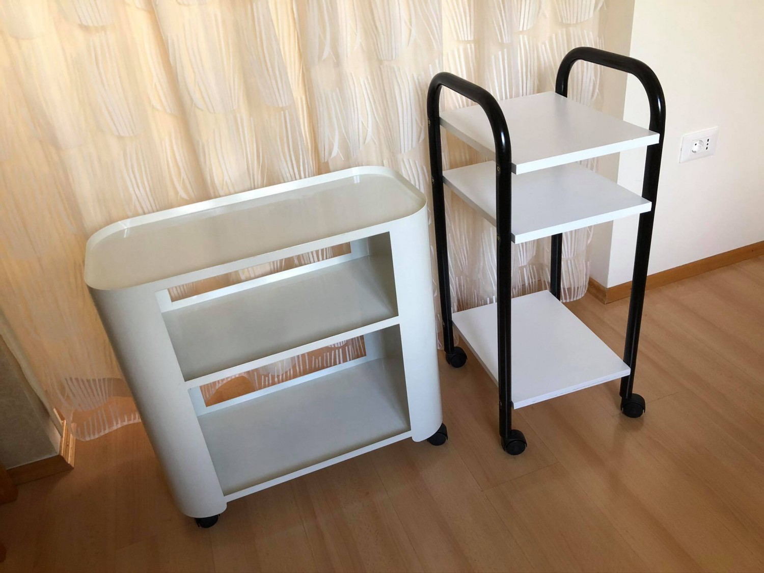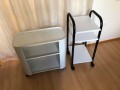 Prodam zelo dobro ohranjen voziček znamke Xaniservice (Xanitalia). Kovinski voziček bele barve ima praktičen dizajn, opremljen je z tremi policami, totalno mobilnost pa mu zagotavljajo štiri kolesca, kar mu omogoča, da se ga z lahkoto premika v in izven salona. Za več info pišite SMS (040566870). Poleg tega vozička zraven priložim še en manjši in višji, z tremi policami bele barve ter črnim ogrodjem (dva ročaja in 4 kolesca).