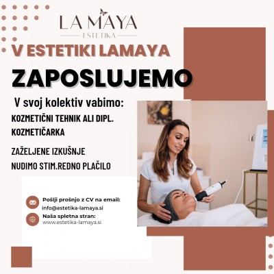 Vaš CV pošljite na info@estetika-lamaya.si z vsemi osebnimi in kontaktnimi podatki, dosedanjimi izkušnjami in kratko samopredstavitvijo.