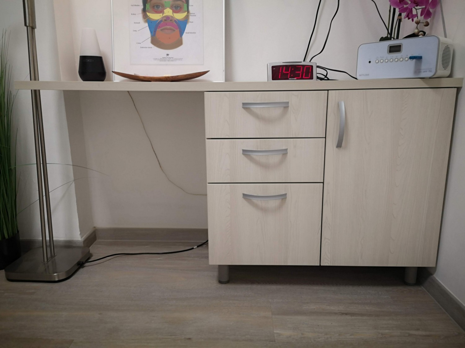 - omarica: višina 62,5cm (skupaj z nogicami 72,5cm), širina 139cm, globina 45cm, cena 50€